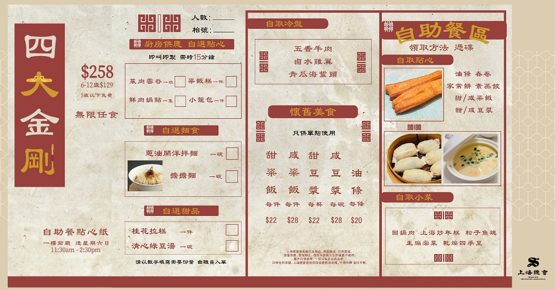 日期:逢星期六、日(2025-04-19起)時間:11:30am-2:30pm地點:上海總會一樓前廳每位:$258(成人)/$129(小童)訂座:2524 9246