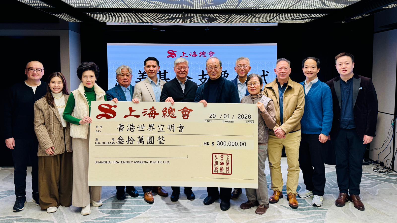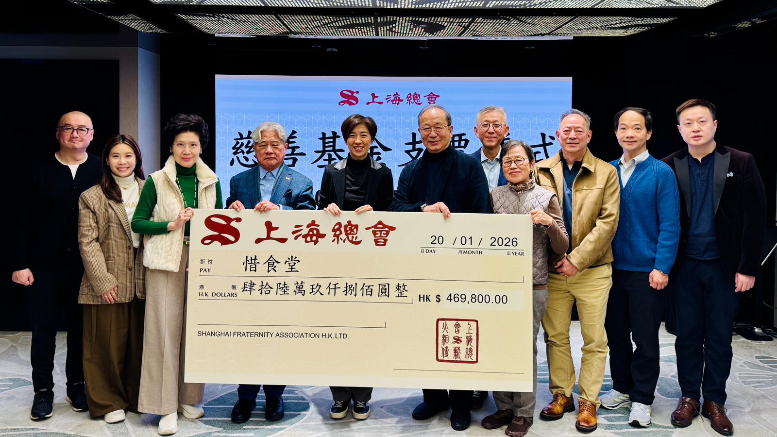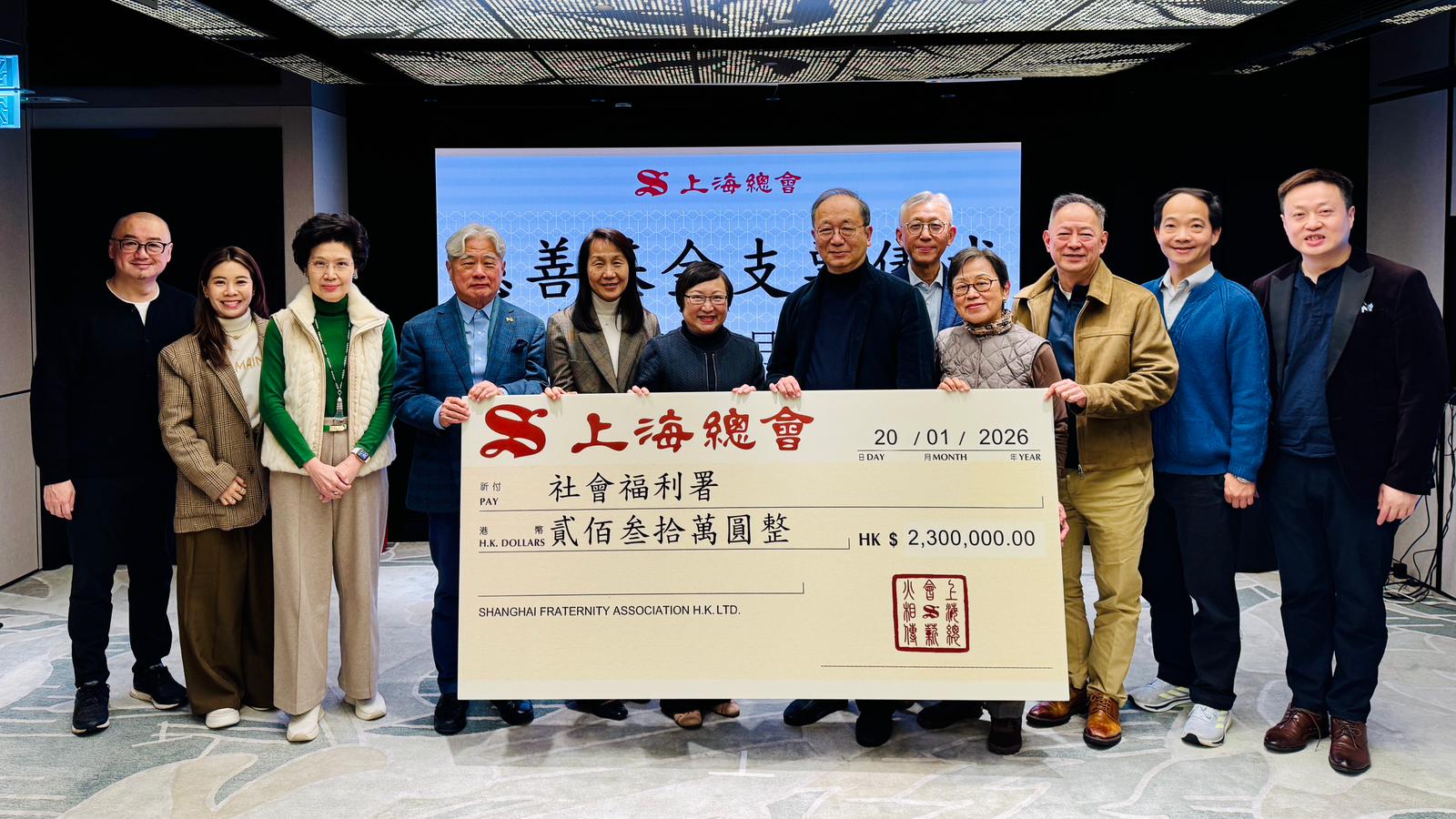 上海總會2025年度慈善基金捐款儀式於2026年1月20日(二)下午四時半,在會所三樓圓滿舉行。本會理監事會代表、嘉賓及院舍代表出席。當日我們首先為大埔宏福苑罹難者默哀,送上祝福。對受災的居民,本會發起「同心匯聚愛心,溫暖宏福災民」募捐活動,籌得港幣1,418,733元,全數捐贈,希望協助大家重建家園,共渡難關!